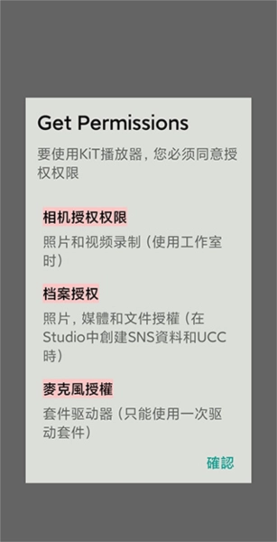 首先打开kitplayer,进入应用后要先完成权限授予操作。