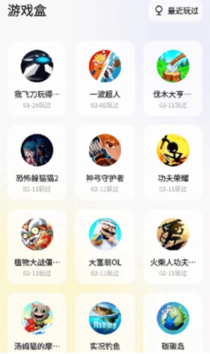 打开盒子,你能看到近期玩过的游戏,像全民学霸、我功夫特牛、滚动的天空这类热门游戏都在其中。