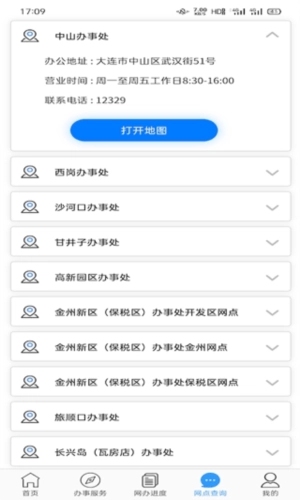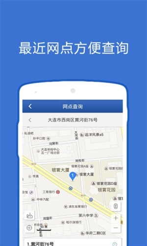 点击网点查询,可以在线查询附近的网点办事处