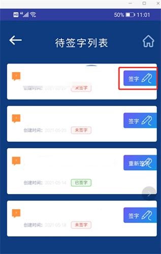签字成功后,签字列表即显示为已签字状态。