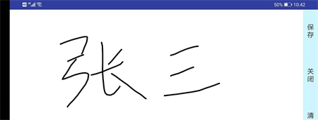 屏幕横向放置,手写签名,字迹工整,点击保存;