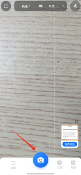 然后拍摄你的文本进行翻译即可
