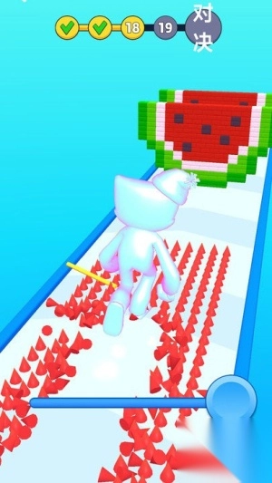 1. 基础操作方面,通过左右滑动来操控角色移动,上下滑动则用于调节角色体积,在角色奔跑期间要灵活应对各类障碍物与陷阱。