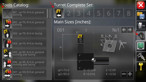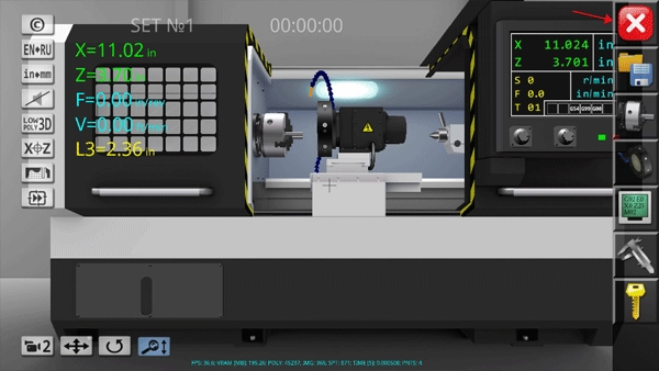 你会看到左侧、右侧以及左下方均设有功能选项,点击左下方红色箭头所指向的位置,该功能用于切换cnc数控车床仿真模拟器的不同视角,以便从不同角度熟悉这款设备。