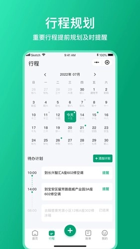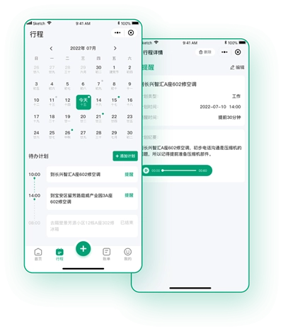还具备维修欠款查询、个人名片发送以增强品牌效应、计划制定以及行程提醒防漏单等功能。