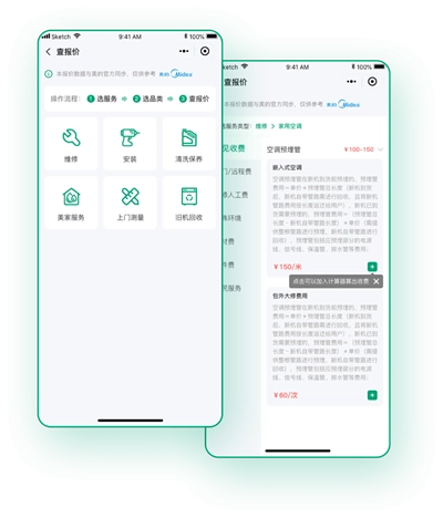 包含日常收支记录、电子收据开具,以及家电安装、维修、清洗的报价查询。