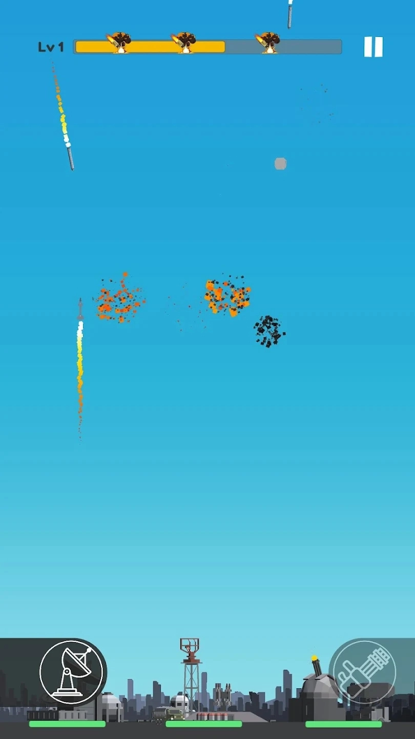 导弹防御是一款休闲射击游戏,在游戏里,你需要操控一座防空炮台,阻挡敌方导弹对城市的袭击。你得凭借自己的反应速度与判断力,精准地瞄准并发射炮弹,拦截导弹,守护你的城市。