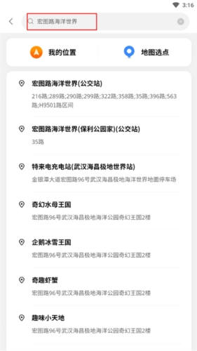 默认显示为“我的位置”,也可点击“我的位置”来进行位置搜索。