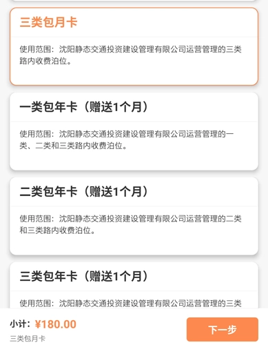 我们也可以选择购买月卡或包年卡服务,例如三类包月的价格是每月180元;包年卡会额外赠送一个月,费用总计2160元。