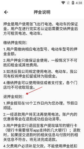 最下方有详细的退押金规则和步骤,用户只需按照步骤操作即可完成退押金。
