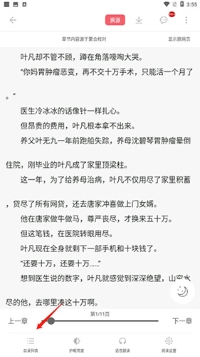 进入阅读页面后,轻点一下空白区域,接着选择“目录列表”选项就可以了。