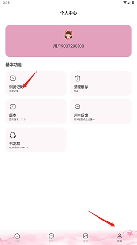 打开软件后,先点击“我的”选项,接着再点击“浏览记录”选项。
