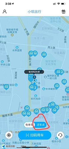 首先点击还车点。