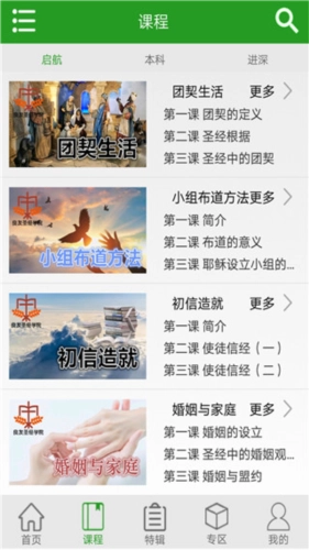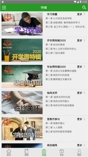 特辑部分:是围绕课程推出的配套专辑,像开学周、毕业周、培灵会这类主题内容都包含在内。