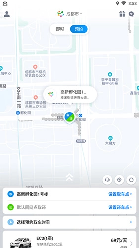 你可以在用车地图页面直接点击还车网点完成预订。车位预订成功后会保留一段时间,不同城市的保留时长可能存在差异。若未在规定时间内将车辆归还至该网点,本次预订将自动取消。