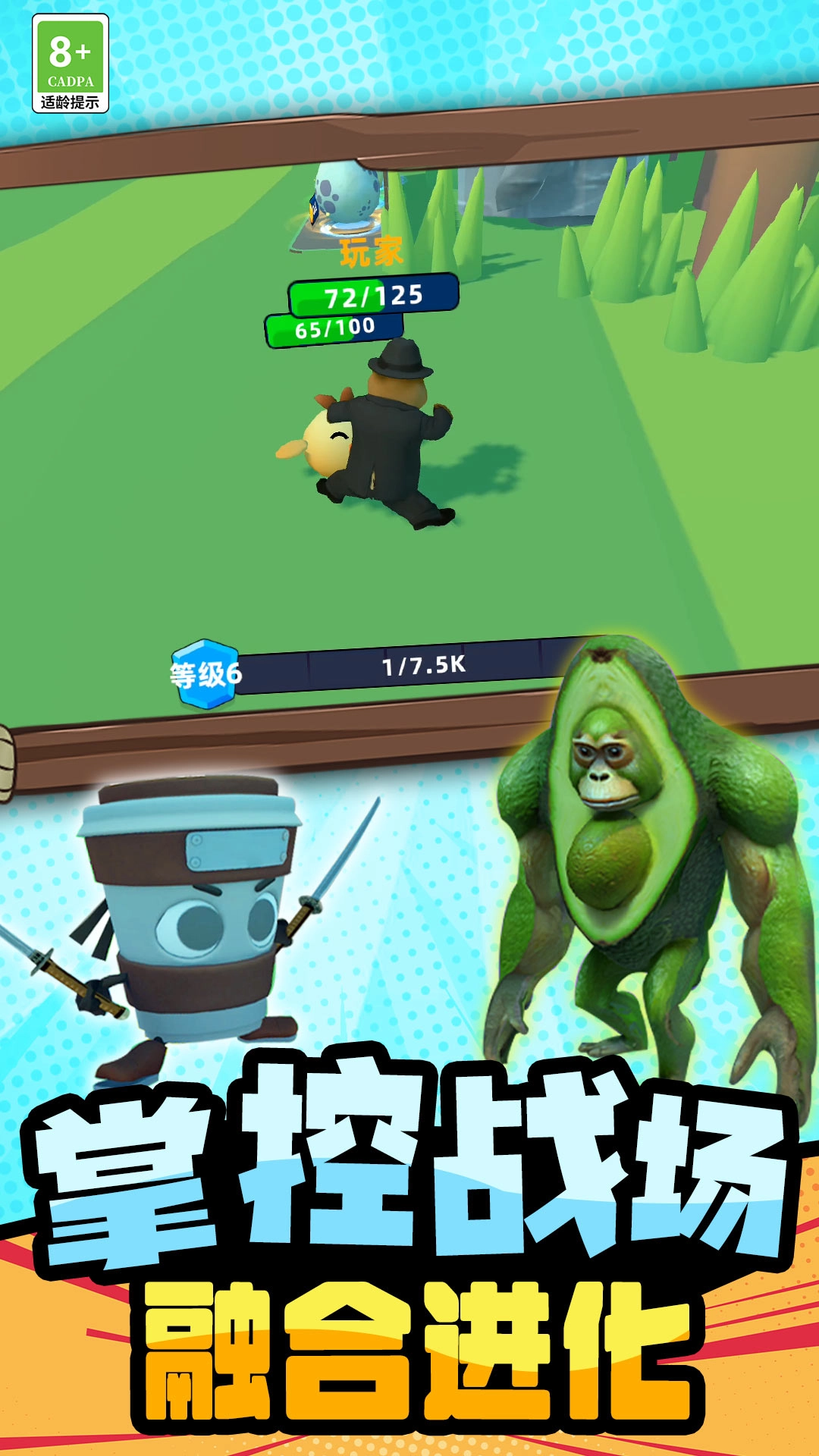 4v4组队进行对抗,需注重分工协作:可进化出“防御型巨盾生物”,也能选择“高速刺客形态”,借助克制链来战胜对手。