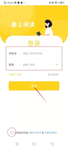在登录界面,先勾选下方的相关协议,再输入账号和密码,最后点击“登录”按钮。