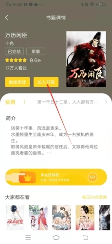 在书籍详情页面,点击“加入书架”;