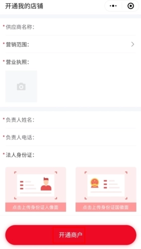 填写好相关信息,点击开通商户按钮;