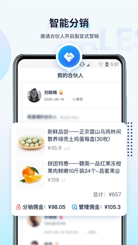 U客整合了多种营销功能与支付能力,能够实现全民分销和自动分账。