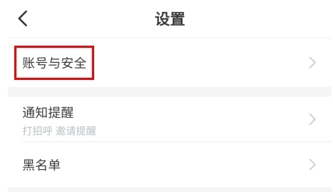 在设置页面中点击账号与安全按钮;