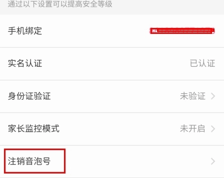 在账号与安全页面中点击注销音泡号按钮;