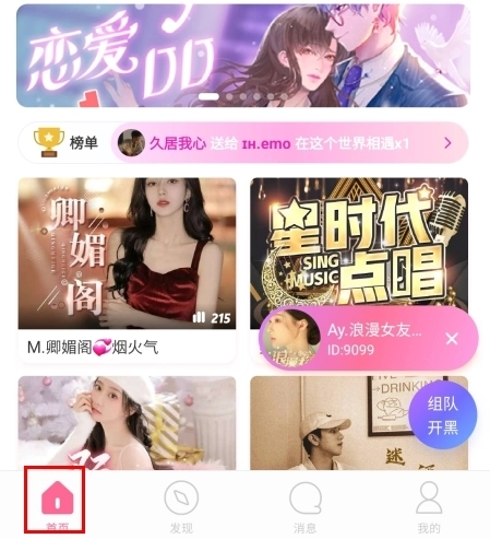 在首页中点击进入房间;