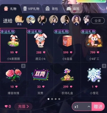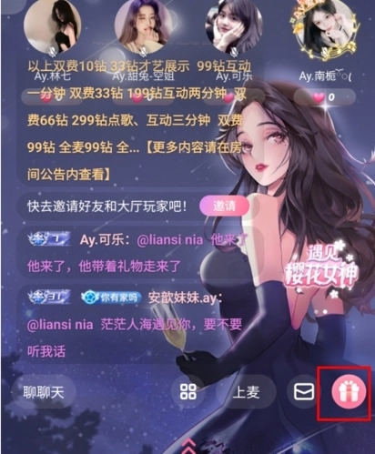 在房间中点击右下角的礼物按钮;