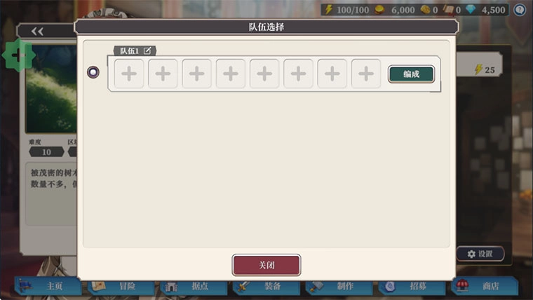 3、出发前你需要配置你的队伍,完成配置后出发冒险