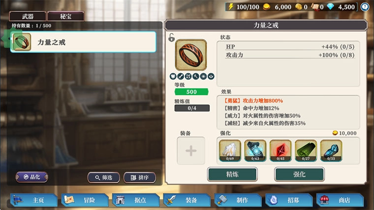 6、而获得的秘宝可消耗材料精炼或强化,提升攻击力