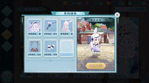 和结缘的机制类似,当锦衣功能解锁后,更换一整套服饰就能改变女主在战斗时的Q版形象。点击左侧的套装选项就能预览具体效果。套装可以通过参与活动、领取充值奖励、购买等途径获得,一套外观里包含了服饰、发饰、发型、配饰、手持物、坠饰等多个组成部分。