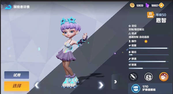 恩智是一名控制型输出英雄,她的小技能能够召唤出减速光柱,让被该光柱影响到的敌人移动速度下降40%。