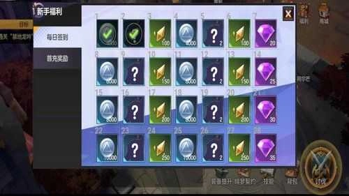 每日签到领取紫钻、银币等物资。