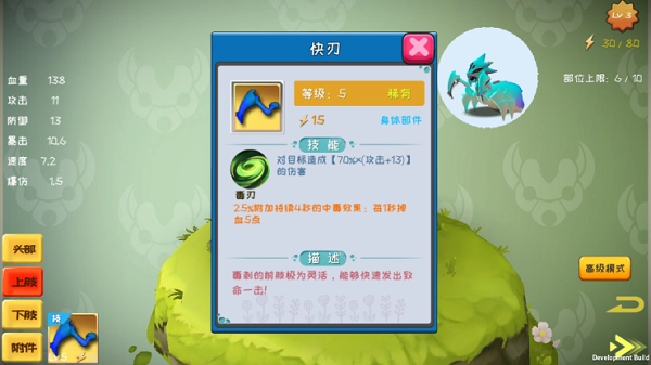 温馨提示:记得把掉落的部件安装好,这样能让自己变得更强大哦,不过要注意部件的数量是有上限的。