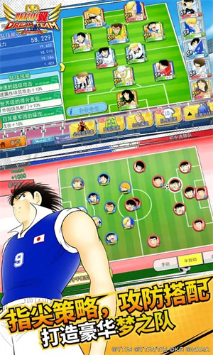 大空翼、岬太郎、若林源三、日向小次郎等经典角色忠于原设的同时,在成长养成及阵容部署方面将赋予玩家更多的操作空间。对于球员玩家可进行专属训练来提升实力,更有针对个人绝技展开的专项提升。此外,根据各队员擅长位置及其成长度,在比赛前成对出场队员进行阵容部署,4-2-2-2、3-2-3-2等多样阵型均可自由选择