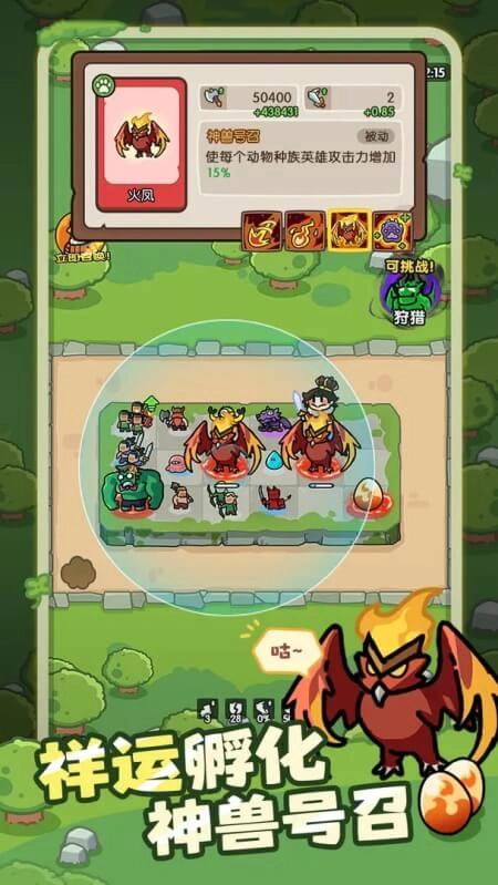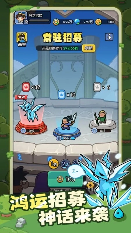 玩法模式上,主要是幸运随机召唤与合成。玩家通过随机召唤英雄来攻击魔物,召唤出的英雄还能用三合一的方式,合成更高级别的英雄。最终,借助特定组合可召唤神话英雄,实现横扫一切,规则简单且充满趣味。