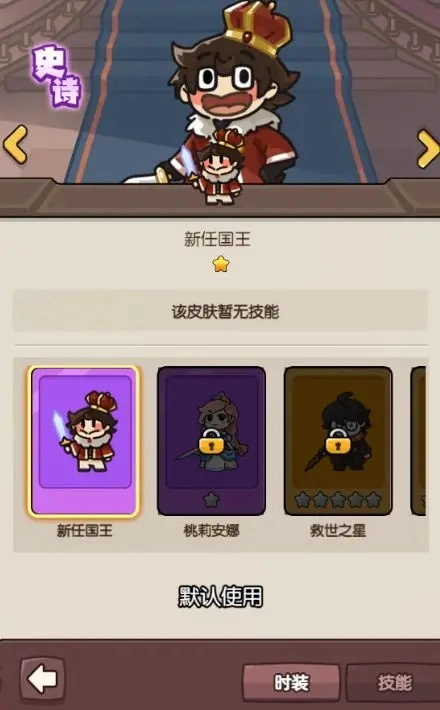 在此处能够给国王替换皮肤,只是当下皮肤数量不算多,不妨期待后续更新的神秘时装。
