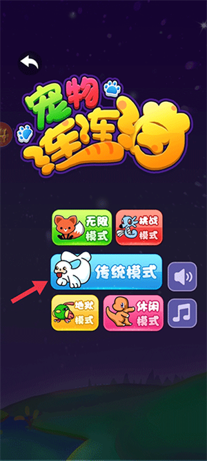 3、进去之后会看到小游戏的各种玩法模式,选择最传统模式,就可以开始游戏了。