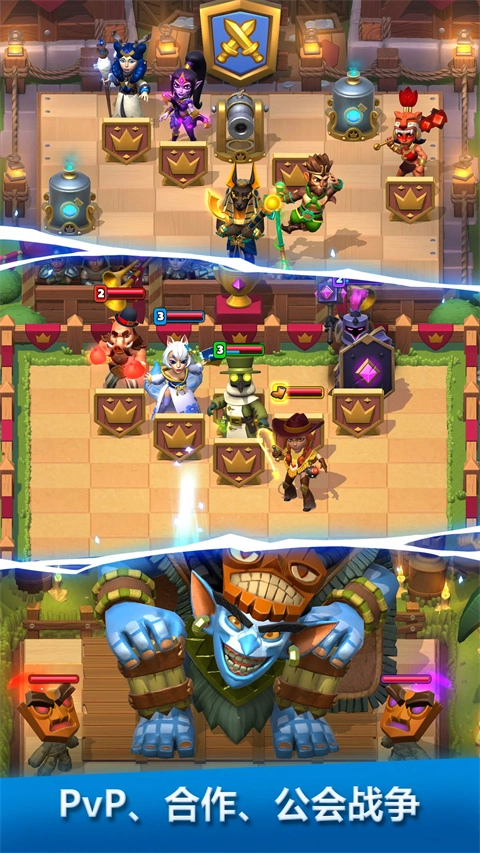 和好友一同玩游戏,于公会战争里战胜敌人。
