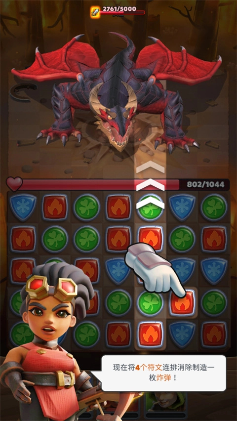 3、把4个符文连续排列并消除,从而制造出一枚炸弹。