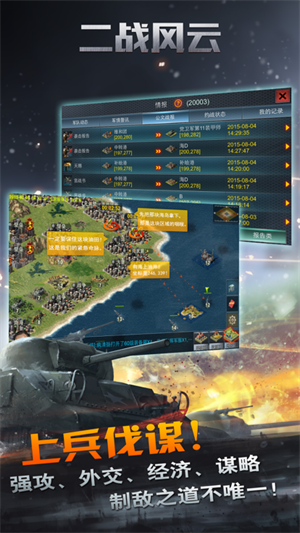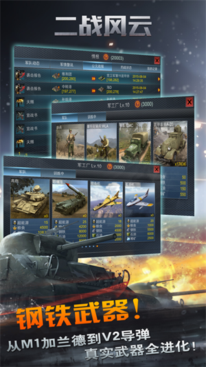 二战风云解锁所有军备无限版属于那种以第二次世界大战当作题材的全 3D 即时战争策略类型的手机游戏。这个游戏实实在在地给咱们玩家把二战时候的好多武器装备都给还原出来了。并且咱们玩家能依靠二战风云解锁所有军备无限版组建出一支特别强大的军队,接着指挥这支军队跟敌人打仗。