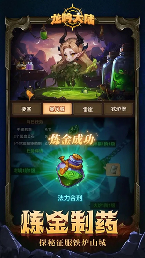 龙吟大陆九游版属于一款西方魔幻题材的放置冒险类手机游戏,重点在于休闲挂机以及轻松养成,就算离线了也能够积攒资源,操作也很简便,对休闲玩家很友好。在这个游戏里,玩家能够深度培养角色,像提升等级、增强技能、制作装备、解锁神兵等等都包含在内。并且还有特别丰富的社交系统,各位冒险者会在这儿展开一场神秘的探险旅程,谱写属于英雄的传奇故事!