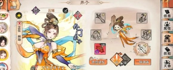 法宝携带与技能携带同理。前排两个回血护盾,后排三个范围输出。法宝开启后一定要第一时间把法宝全部给到每个弟子,这样才能快速推图,不然容易卡关。