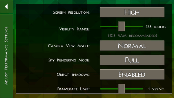 2、“settings”中的“performance”中,我们还可对游戏中的画质进行自定义设置,对于设备配置较低的玩家,可适当的降低画质,来提高游戏的流畅性