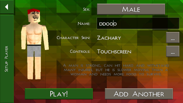 5、创建的角色,我们可对其的服饰、名称等进行自定义设置,确定无误后点击“play”,如果想体验双人或更多模式时点击“add another”创建更多的角色。