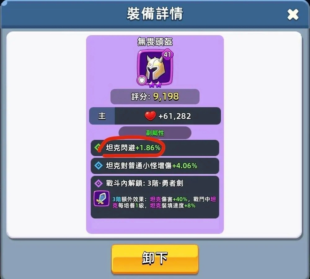 推荐坦克的副属性为减伤与闪避。