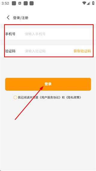 3、在登录页面填写手机号和验证码,勾选协议后,点击登录完成账号登录操作。
