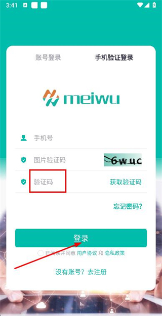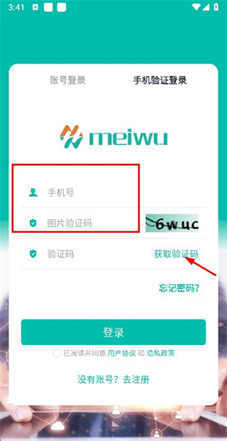 2、在登录页面填写手机号和图片验证码,点击获取验证码。