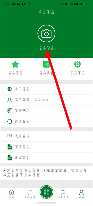 2、在我的页面,点击立即登录,进入登录界面。