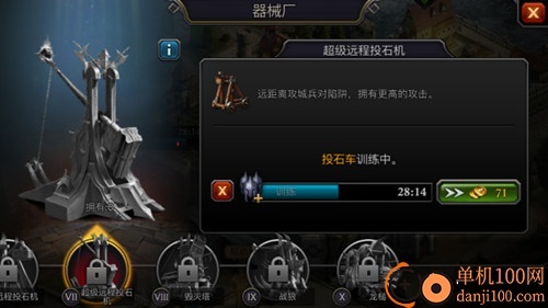 投石车——车兵中的后排攻击速度极慢,克制"陷阱"及敌人前排部队,但被"骑兵"所克制,通常针对敌人的前中排杀伤有限,因为攻击太慢了...。